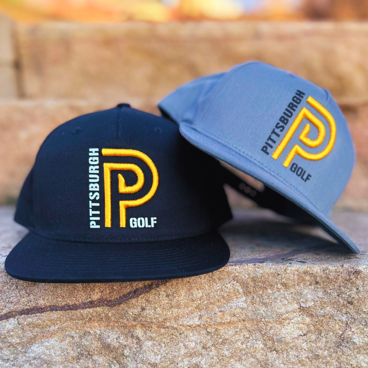 Introducing our Pittsburgh Golf Hat! This stylish pinch front 5-panel cap is crafted from lightweight cotton twill, offering both comfort and durability. Featuring a sleek flat bill and an adjustable snapback closure, it perfectly combines classic style with modern flair.